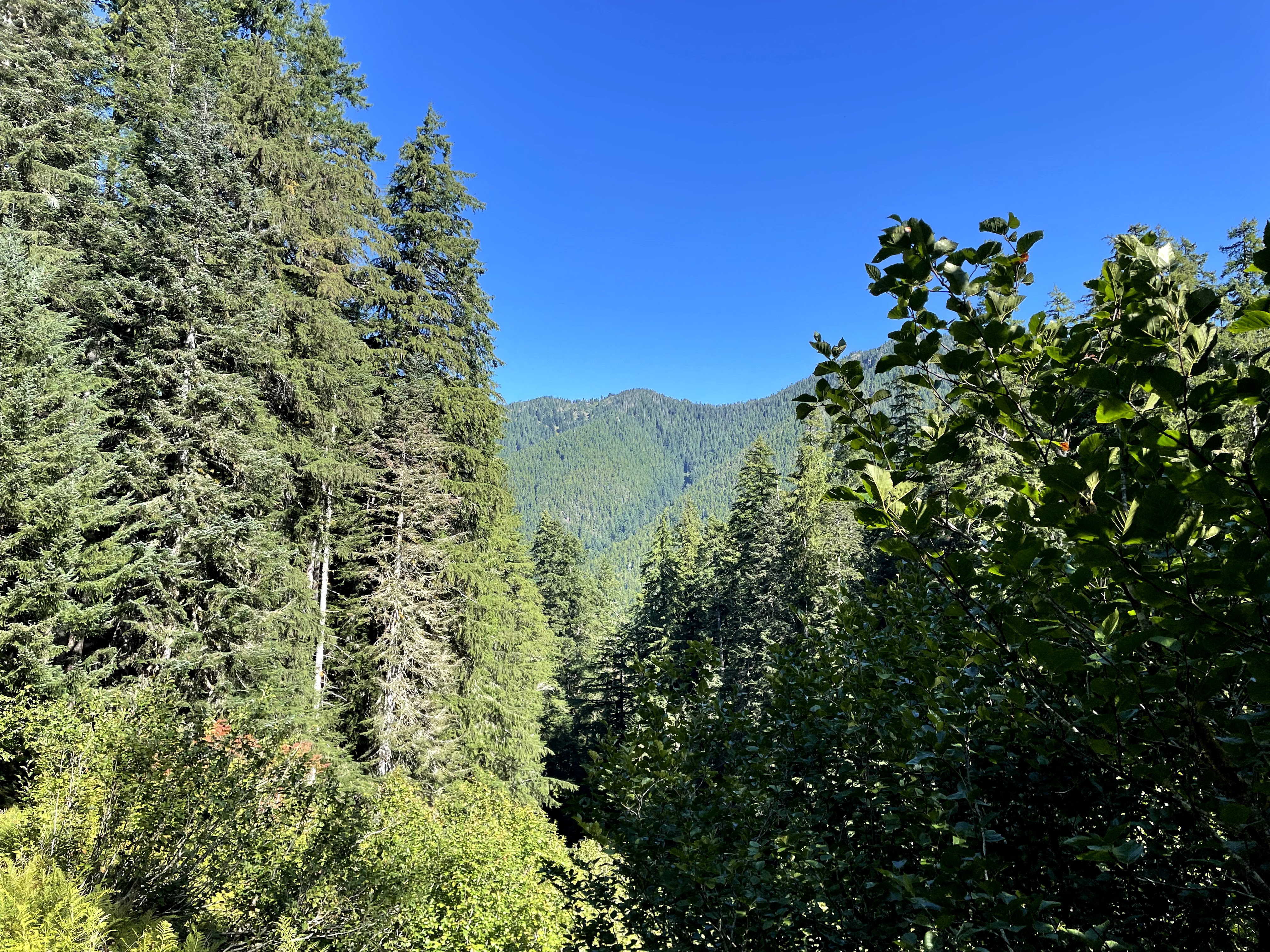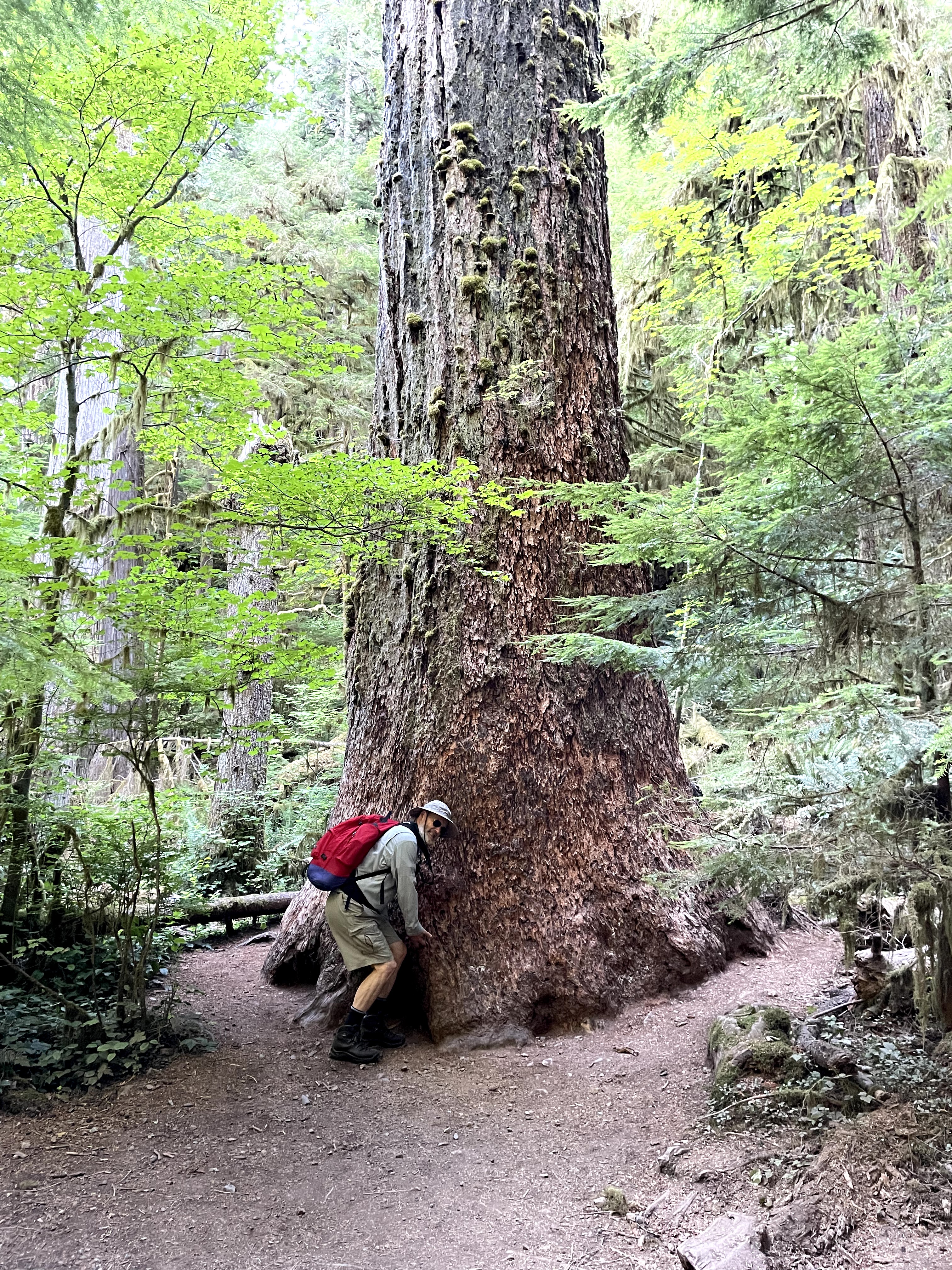 Unsurprisingly, we decided to take a rain check on Marymere Falls, and instead headed back out. We took our time, taking pictures with one of the gigantic trees along the wide trail and stopping to appreciate a doe grazing behind some ferns. When we arrived back at the parking lot around 12:30pm, it was even busier than when we started and cars were lined up down the road to the campgrounds. I’d call this hike a 7/10, but perhaps I’ll rate it higher when I return and make it to the top.